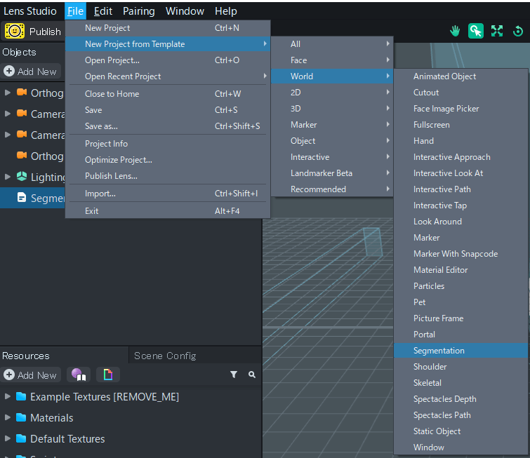 2.「File」→「New Project from Template」→「World」→「Segmentation」を選択