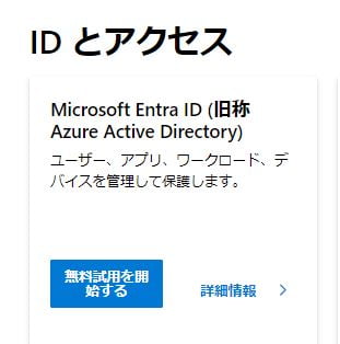 「Microsoft Entra ID (旧称 Azure Active Directory)」の「無料試用を開始する」をクリックします。