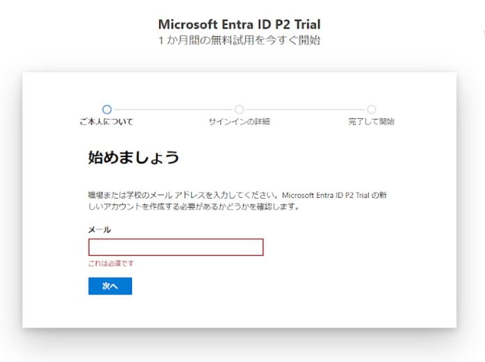 Microsoft EntraIDの試用版は無料です。