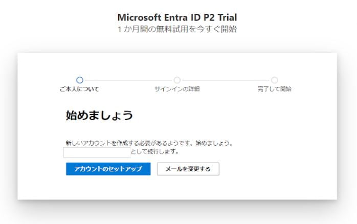 「Microsoft Entra ID Trialの使用を開始する」をクリックします。