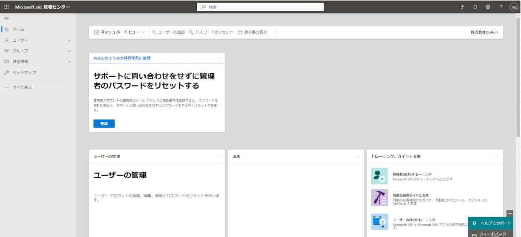 Microsoft365管理者センター画面が開きますが、