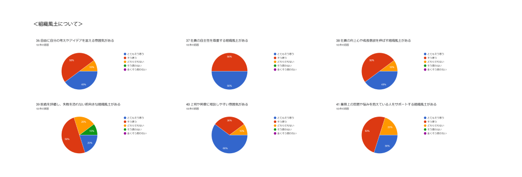 一部、失敗を恐れない組織風土で「そう思わない」と言う回答がありましたので、まだまだ改善が必要そうです。