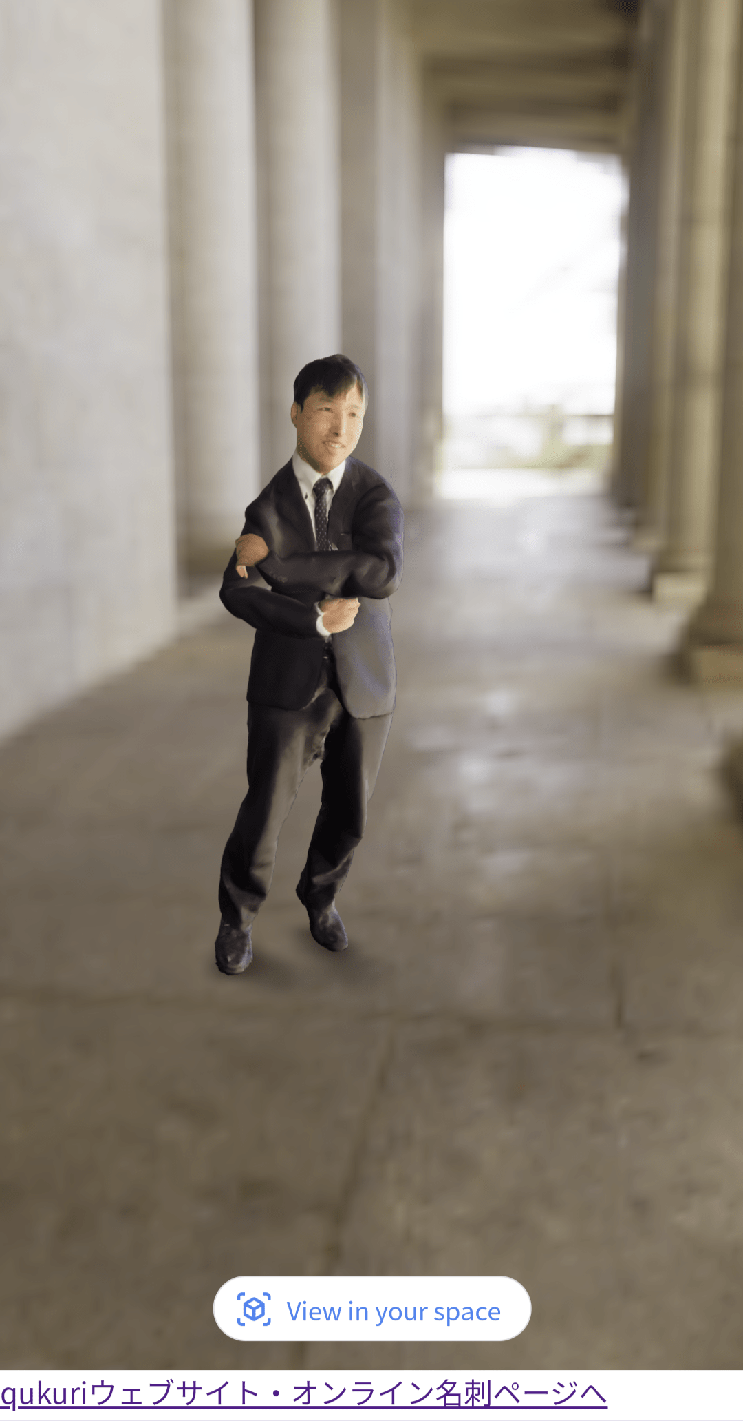 その中で、今回目標としたのは、スマホで名刺をかざすと私(の3Dオブジェクト)が現れて簡単な会社紹介をして、Webサイトへと誘うARだ。